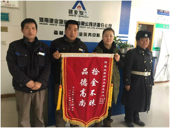 濟源·建業(yè)森林半島某業(yè)主家親戚來訪,歡聚一堂,下午在親戚準(zhǔn)備離去時發(fā)現(xiàn)自己的隨身紅包(內(nèi)有約2000元現(xiàn)金)不見了,著急的樓上樓下來回跑,此情此景恰好被綠化工朱建齊看見,他主動上前詢問又現(xiàn)場幫忙尋找,且致電辦公室救援,值班人員王擁軍、陳文忠收到信息后,立即開始查找監(jiān)控,連續(xù)翻閱視頻13個小時終于找到了,此時已是深夜11時。次日急忙撥通了失主的電話通知其前來領(lǐng)取,業(yè)主親戚對建業(yè)物業(yè)認真負責(zé)的態(tài)度連聲夸贊,并送錦旗一面。