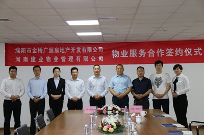 5月24日,河南建業(yè)物業(yè)管理有限公司與濮陽金橋廣源房地產(chǎn)開發(fā)有限公司物業(yè)顧問戰(zhàn)略合作簽約儀式在建業(yè)總部港成功舉行,金橋廣源地產(chǎn)總經(jīng)理史乾亨、副總經(jīng)理張志現(xiàn)、營銷總監(jiān)王俊超、行政總監(jiān)馬顏、河南建業(yè)物業(yè)管理有限公司助理總經(jīng)理杜鵬濤出席了本次活動。在此之前,4月15日建業(yè)物業(yè)也成功與開封家盟置業(yè)有限公司簽署了物業(yè)顧問及案場代管合同。