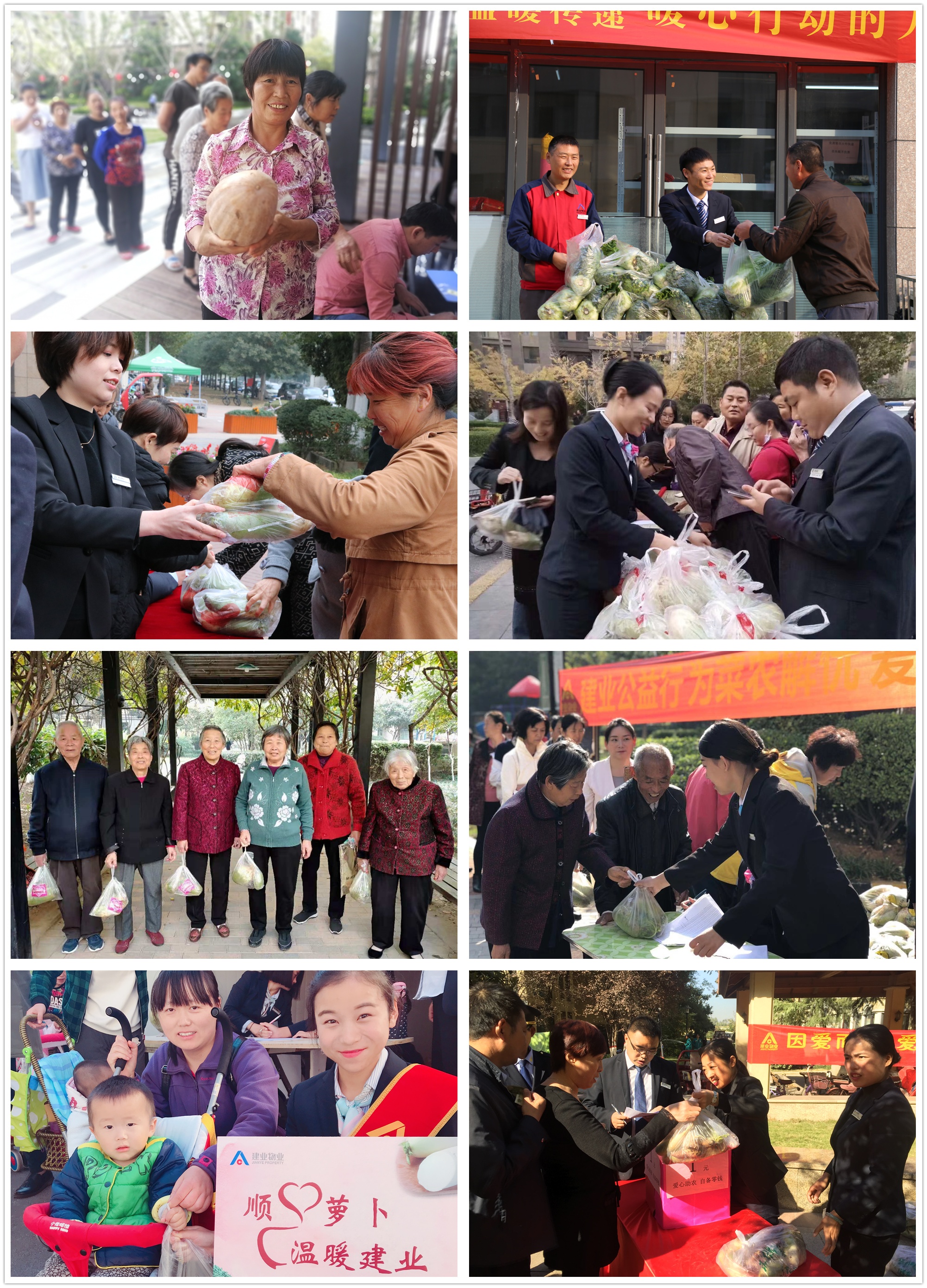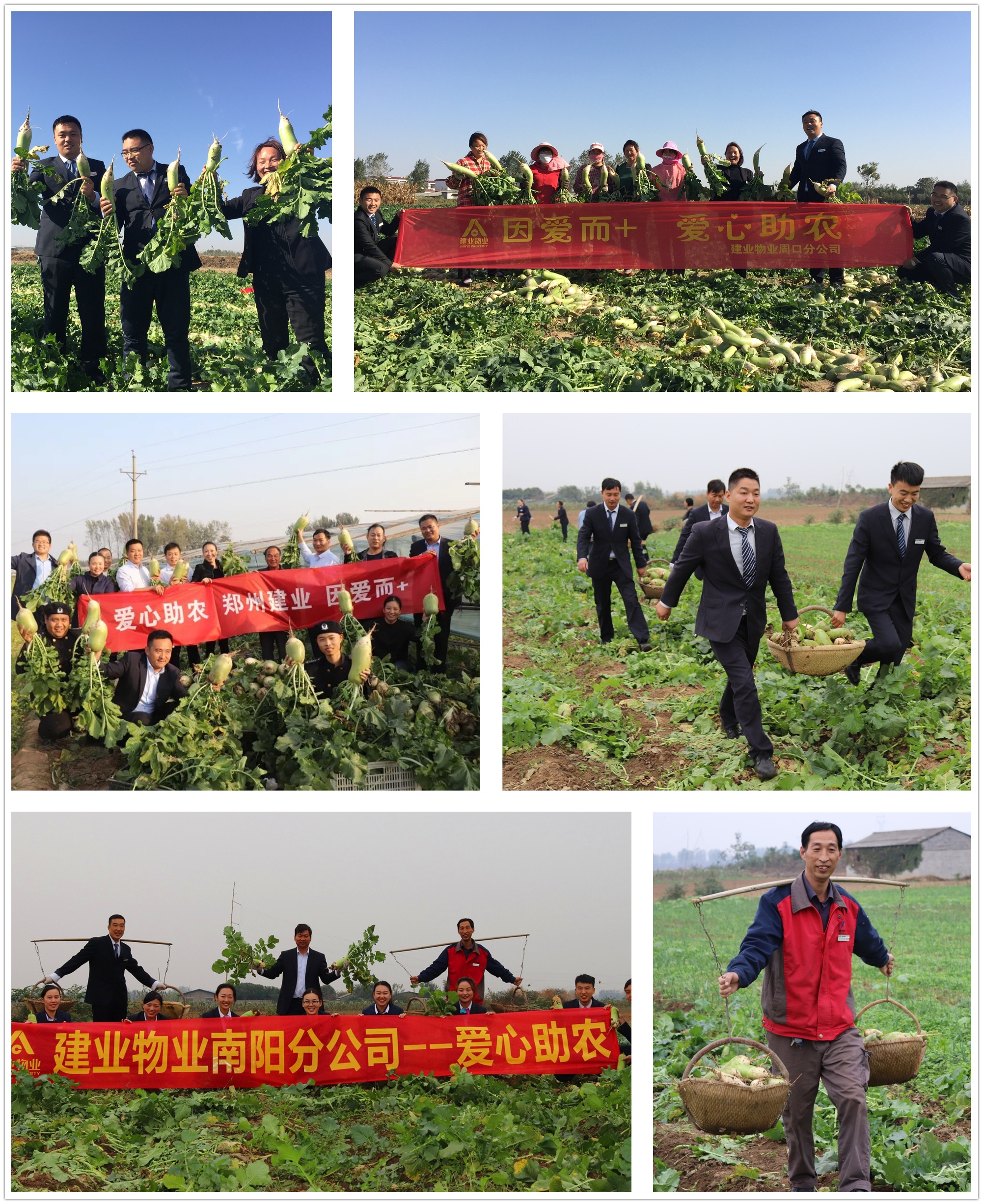 2018年秋冬,河南部分地區(qū)蘿卜、白菜、南瓜等農(nóng)產(chǎn)品滯銷的消息牽動著建業(yè)物業(yè)人的心。為解決地方農(nóng)民賣菜難的問題,建業(yè)物業(yè)十余個分公司紛紛向農(nóng)戶伸出援手,積極認(rèn)購滯銷農(nóng)產(chǎn)品,先后開展愛心助農(nóng)公益活動92場,助銷蘿卜、白菜、南瓜等農(nóng)產(chǎn)品216390斤,惠及33362戶業(yè)主。