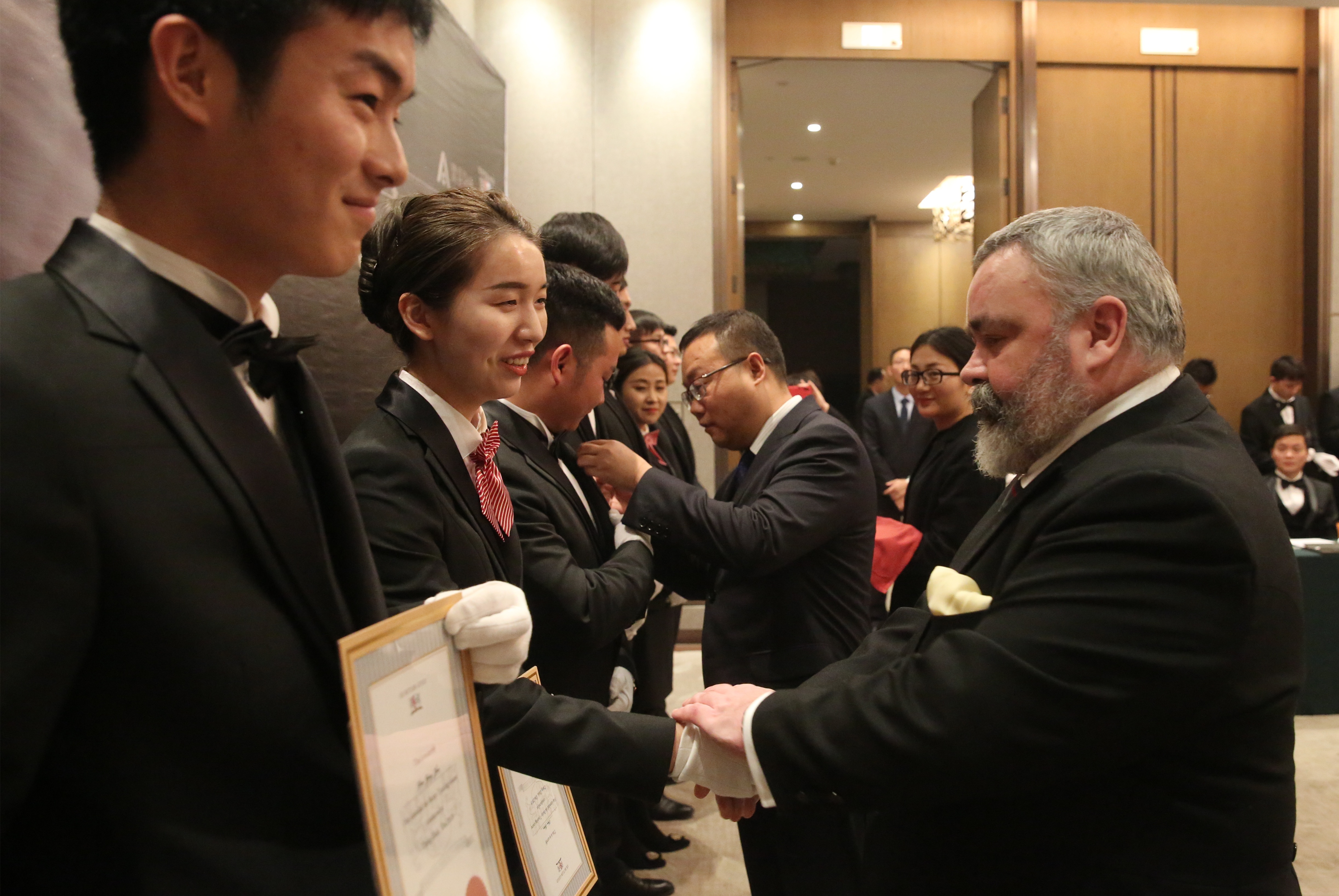 結(jié)業(yè)典禮上,建業(yè)物業(yè)負(fù)責(zé)人張禮輝致辭并為學(xué)員們授徽,英國(guó)管家協(xié)會(huì)大中華區(qū)的安東尼老師則為學(xué)員們頒發(fā)了由英國(guó)管家協(xié)會(huì)認(rèn)證的國(guó)際管家證書。