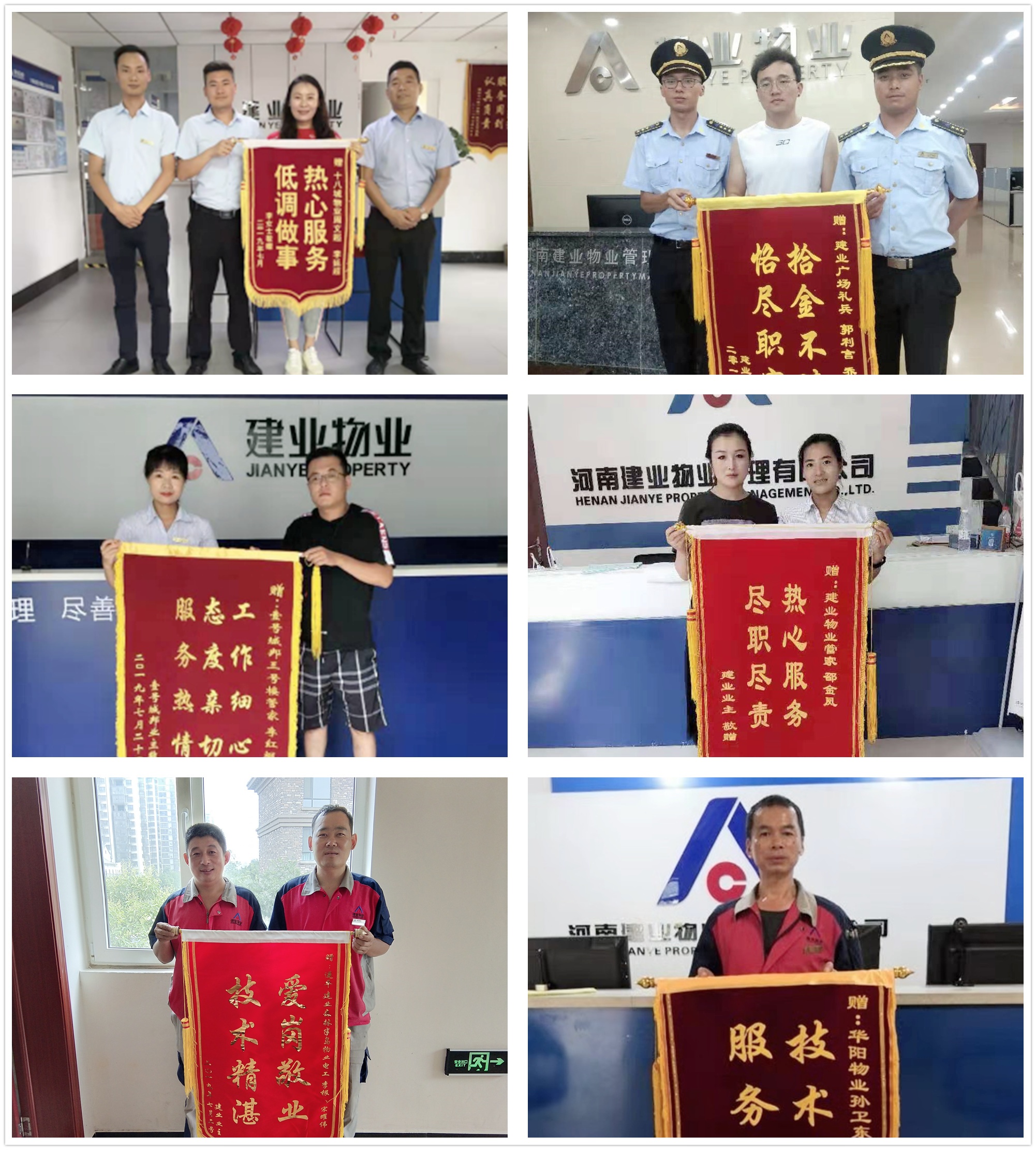 七月流火,炎陽炙人。在剛剛過去的七月里,建業(yè)物業(yè)人無懼酷暑、堅(jiān)守崗位,堅(jiān)持提供品質(zhì)服務(wù),贏得了眾多業(yè)主的一片盛贊。七月,全省在管小區(qū)涌現(xiàn)出好人好事共計(jì)343起,其中收到錦旗94面、表揚(yáng)信120封、電話及其他表揚(yáng)120起。