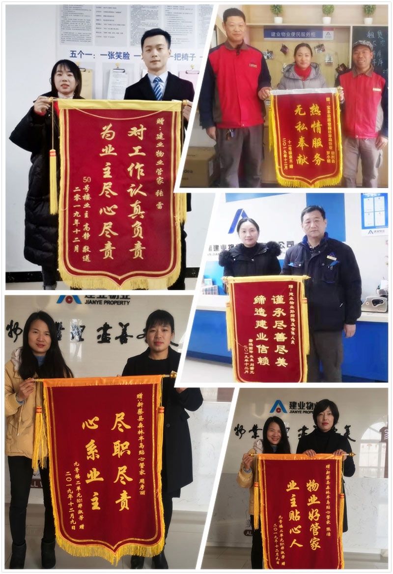 嚴(yán)寒十二月,寒風(fēng)刺骨。建業(yè)物業(yè)全體員工提供的暖心服務(wù)卻能抵御寒冬,讓業(yè)主感受到春天般的溫暖。本月,我們收到拾金不昧、技術(shù)高超、服務(wù)熱情、助人為樂(lè)等好人好事共405例,其中,收到錦旗113面、感謝信146封、致電感謝及其他形式的點(diǎn)贊146起。
