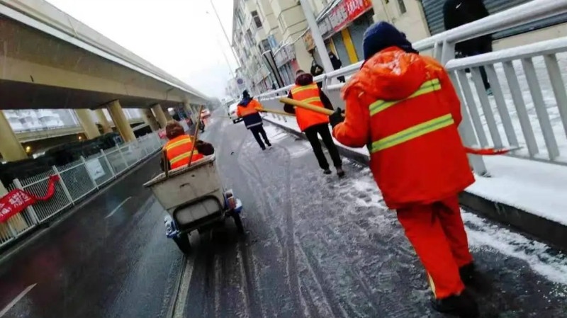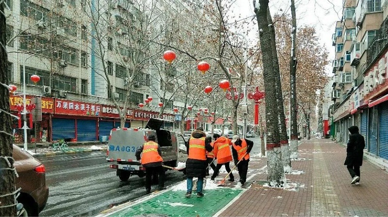 疫情期間的道路清潔任務(wù)比平日里要重得多,突變的環(huán)境更增加了環(huán)衛(wèi)工人的壓力。2月5日夜間至2月6日早上8點(diǎn),鄭州突降大雪,抗疫正在關(guān)鍵時(shí)期,風(fēng)雪“滋養(yǎng)”環(huán)境,建業(yè)物業(yè)鄭州二七環(huán)衛(wèi)項(xiàng)目迅速反應(yīng),積極部署,420名員工展開清雪除雪行動(dòng)。