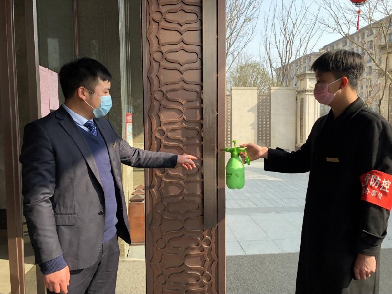 王新知每日背著沉重的消毒噴霧箱把園區(qū)的每個角落都消殺干凈;采買防護(hù)物資分發(fā)給業(yè)主;保證每個同事在作業(yè)的時候都做好自我保護(hù);安撫同事情緒……