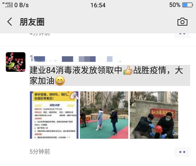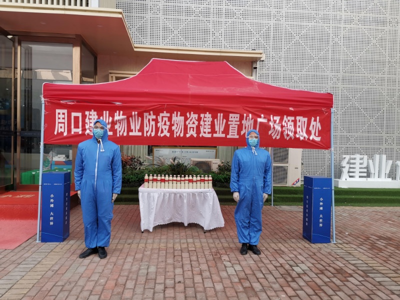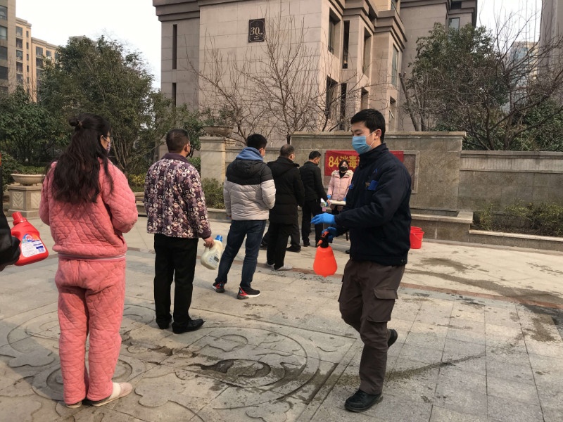 在建業(yè)物業(yè)社區(qū)免費(fèi)發(fā)放消毒液