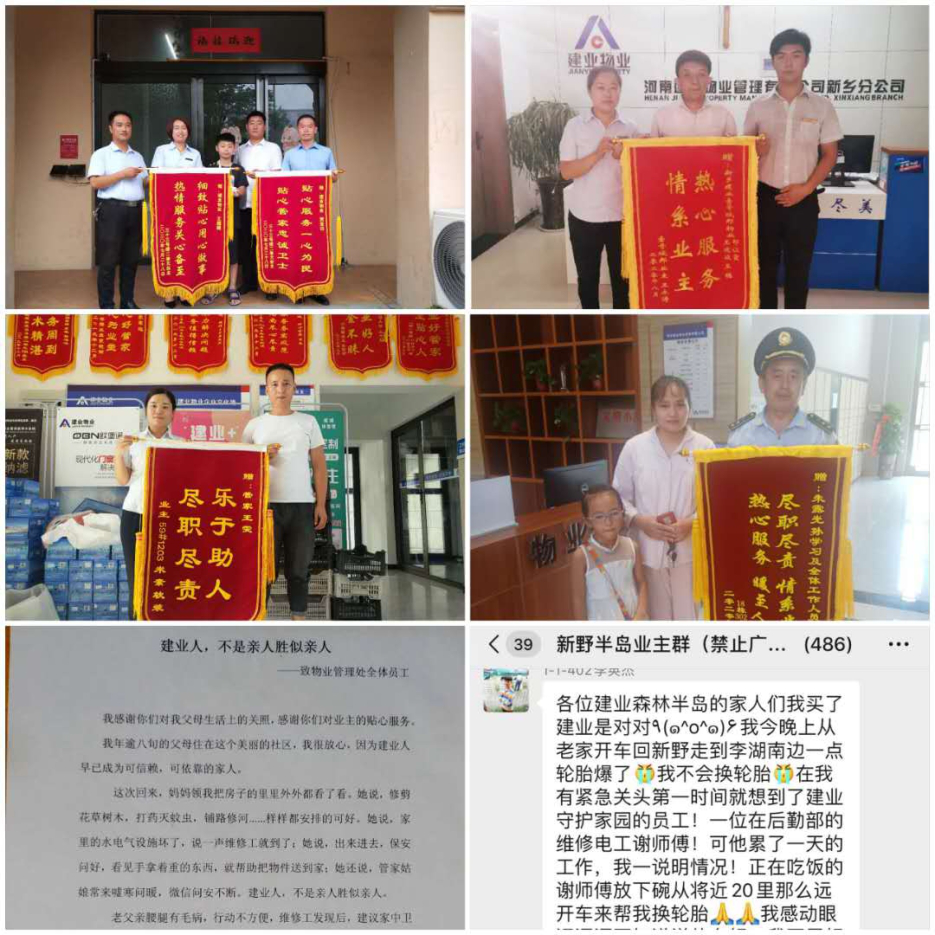 一封感謝信,寥寥數(shù)語卻充滿感動(dòng);一面錦旗,尺寸方圓卻代表著業(yè)主滿滿謝意;一通電話,常常是混雜著感動(dòng)的淚水;一次微信表揚(yáng),是業(yè)主對(duì)建業(yè)物業(yè)人的禮贊。8月期間,建業(yè)物業(yè)收獲了滿滿的謝意。在美好的9月,全體建業(yè)物業(yè)人將以更飽滿的熱情為業(yè)主的幸福生活保駕護(hù)航。