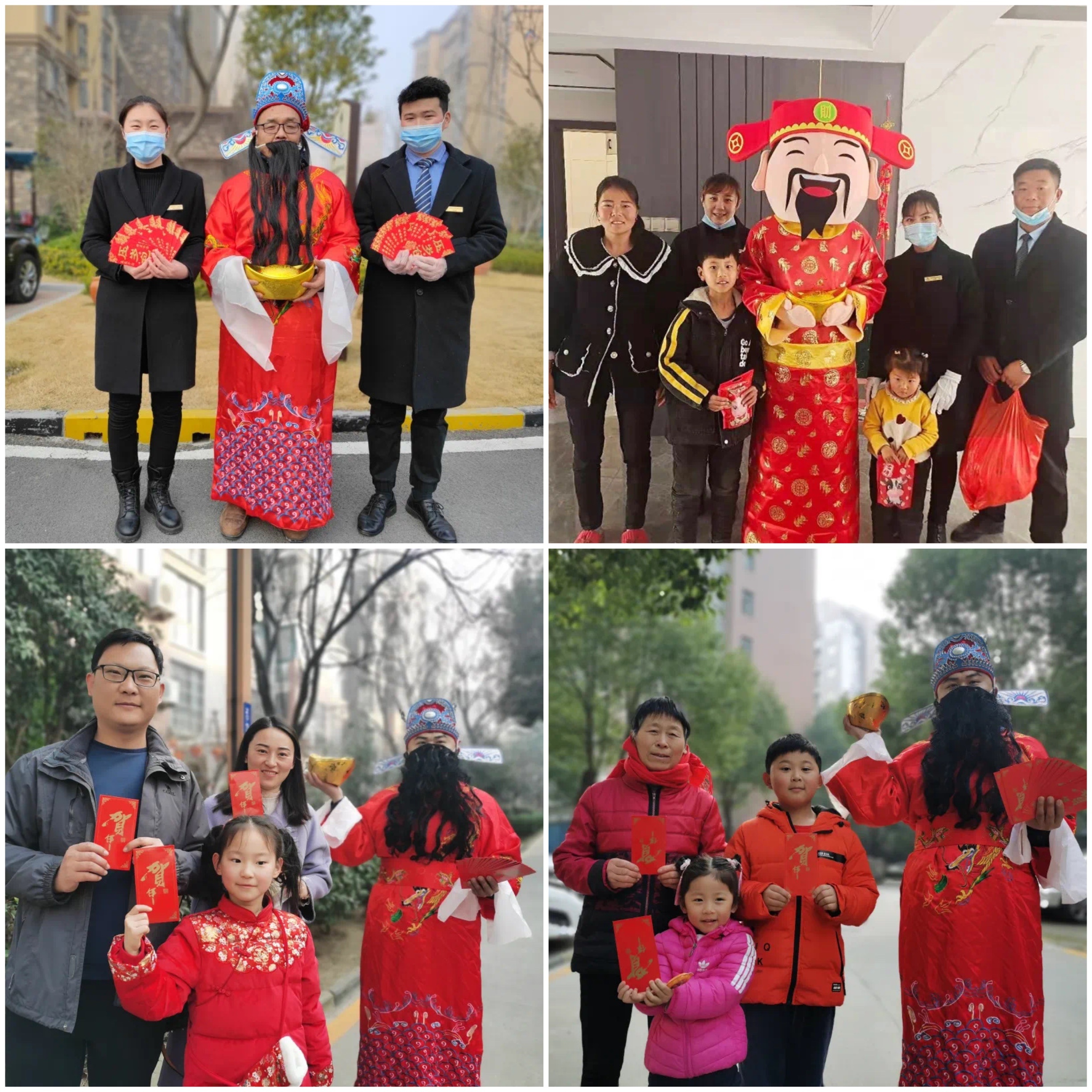 財神迎到家,日子越發(fā)達。大年初五這天,建業(yè)物業(yè)的工作人員扮起了財神,并準(zhǔn)備了小紅包、糖果、零食等禮物,為業(yè)主送福氣。不少業(yè)主看到后,紛紛與物業(yè)人扮演的財神合影,想要沾點喜氣,整個小區(qū)都充盈著歡樂的笑聲。