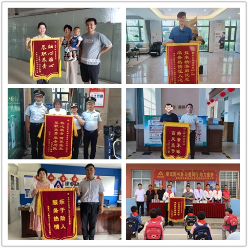 一個(gè)個(gè)精彩的故事在6月涌現(xiàn);一個(gè)個(gè)動(dòng)人的情節(jié)在蛙聲蟬躁里羽翼豐滿(mǎn)。6月期間,建業(yè)物業(yè)在管園區(qū)內(nèi)涌現(xiàn)出好人好事544件,其中收到錦旗128面、感謝信86封、其他致電表?yè)P(yáng)等330次。