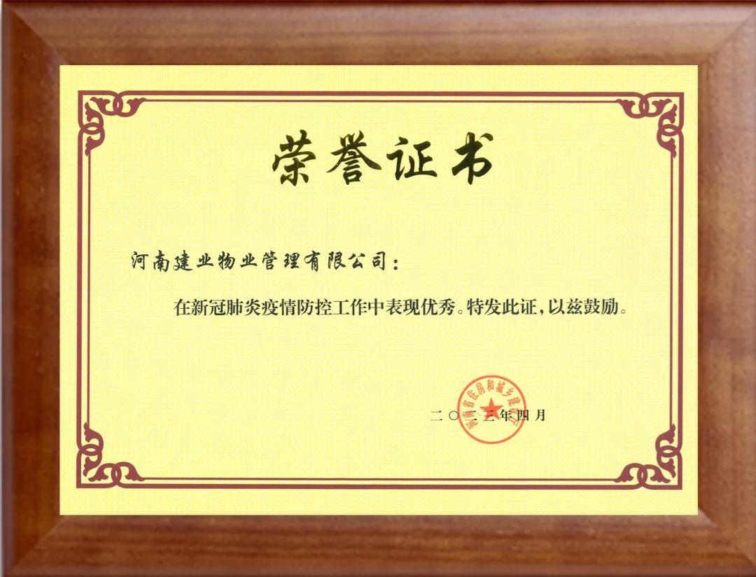 建業(yè)物業(yè)榮膺“抗擊疫情表現(xiàn)優(yōu)秀企業(yè)”稱號(hào)