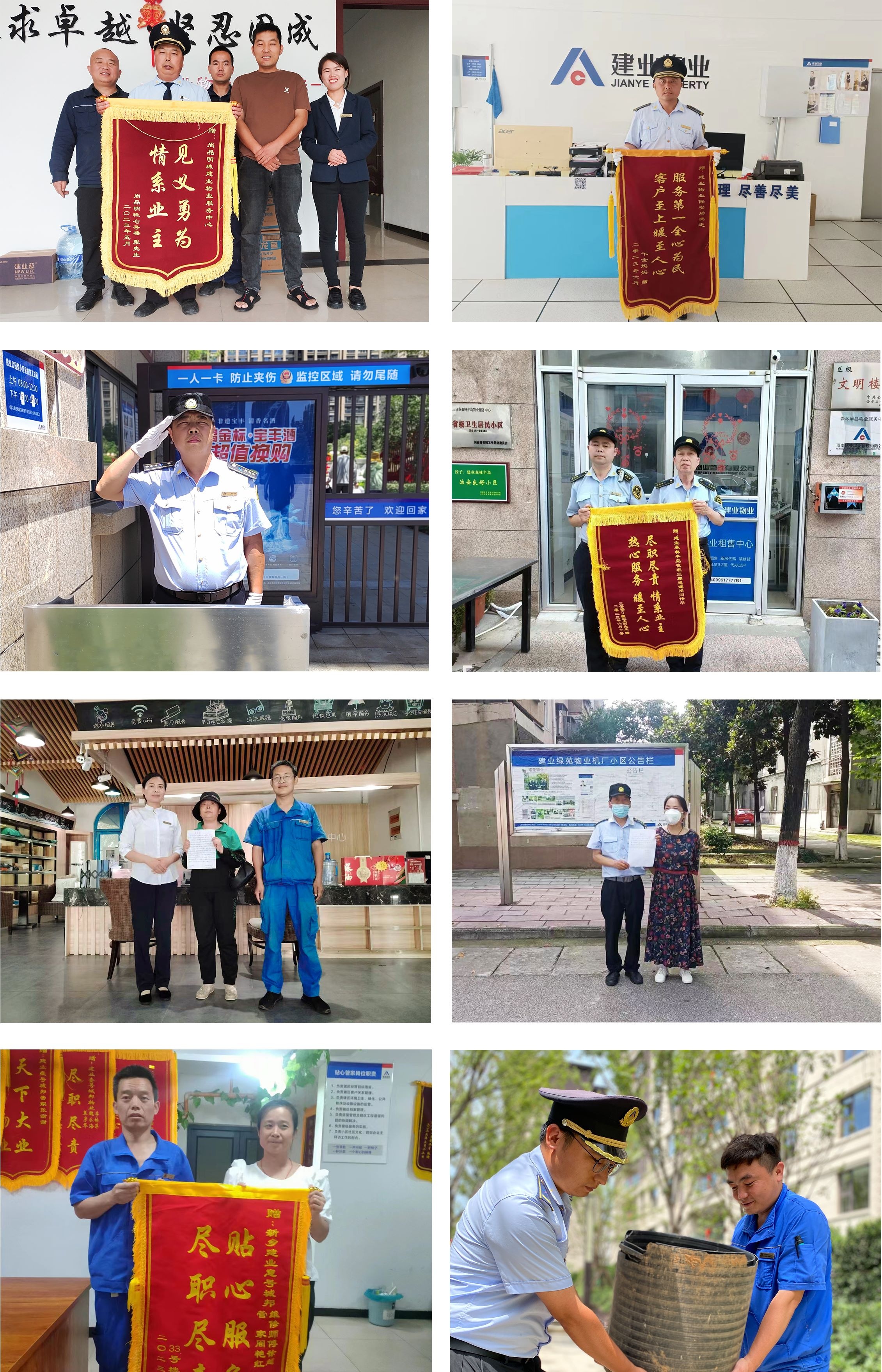 6月份,建業(yè)物業(yè)在管園區(qū)涌現(xiàn)出好人好事854件,其中收到錦旗232面、感謝信90封、其他致電表揚等529次。